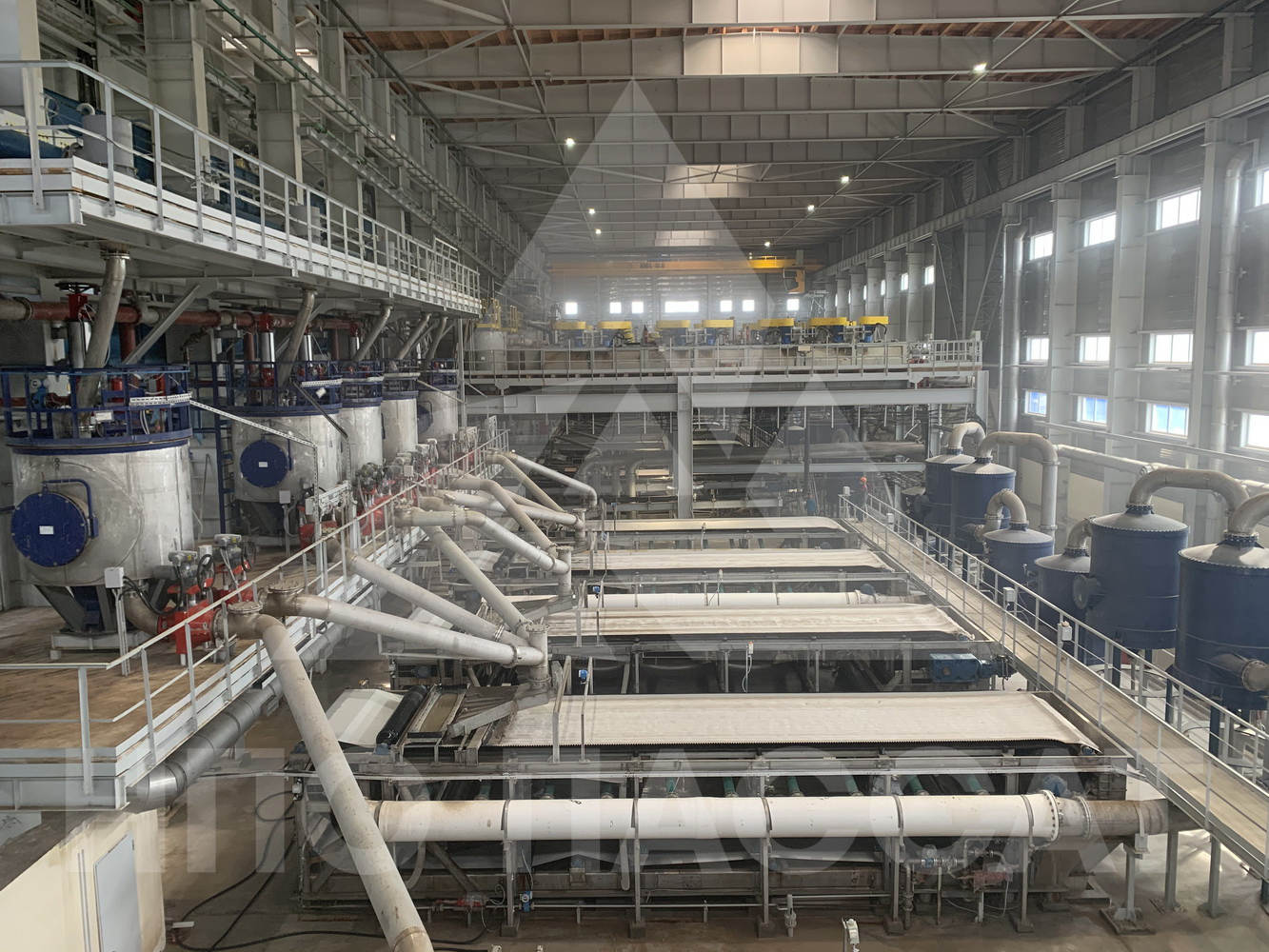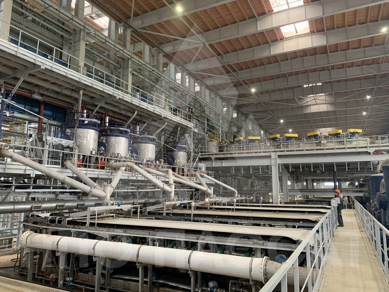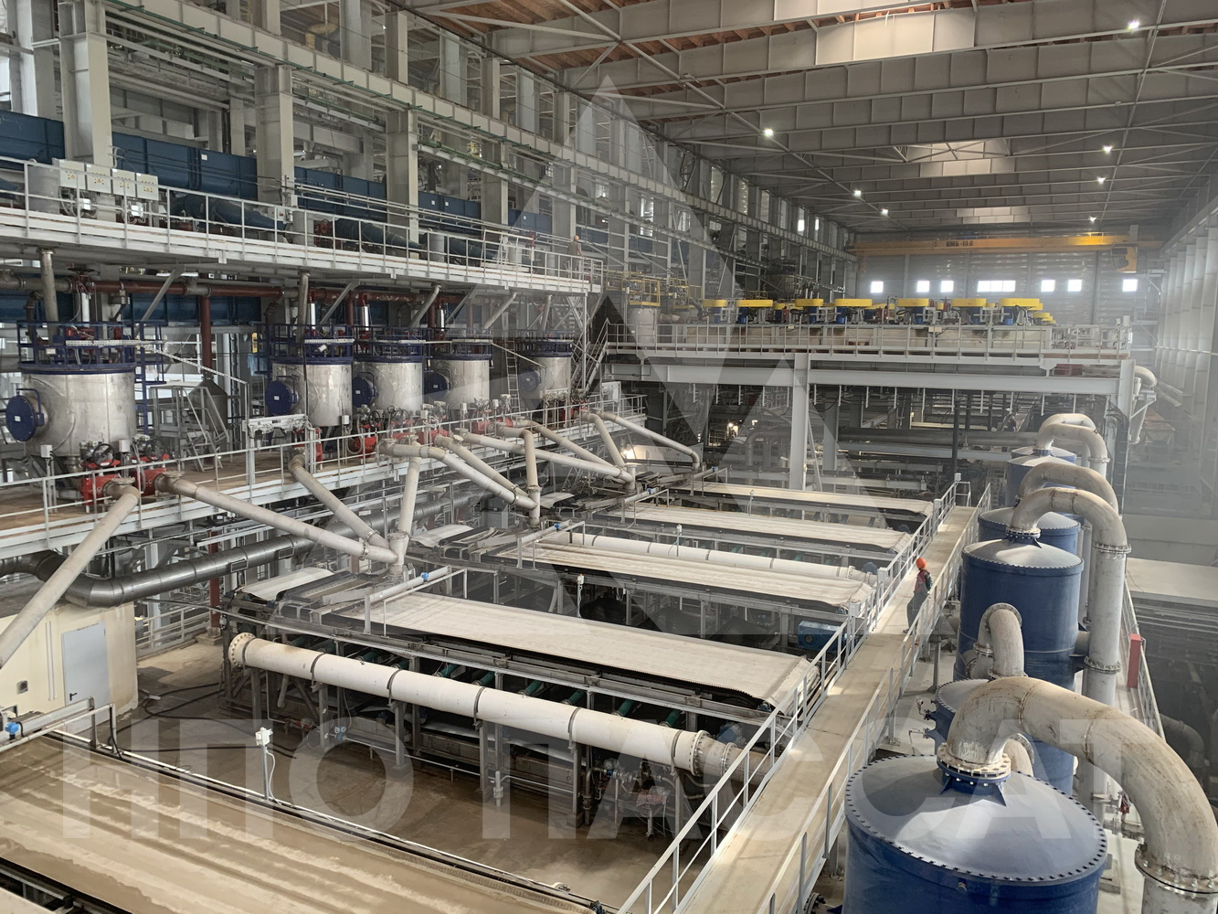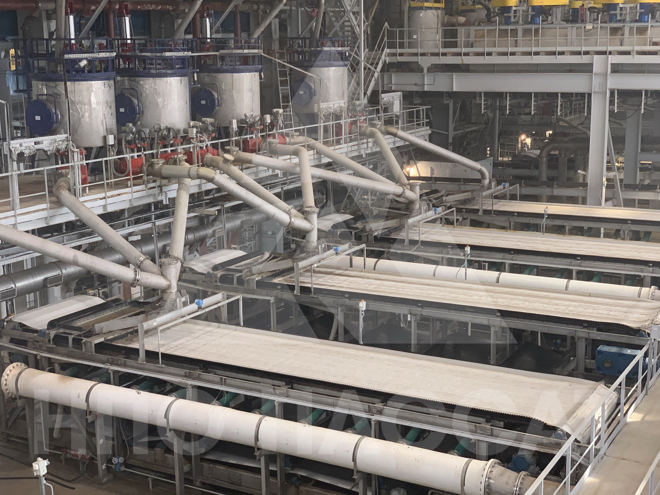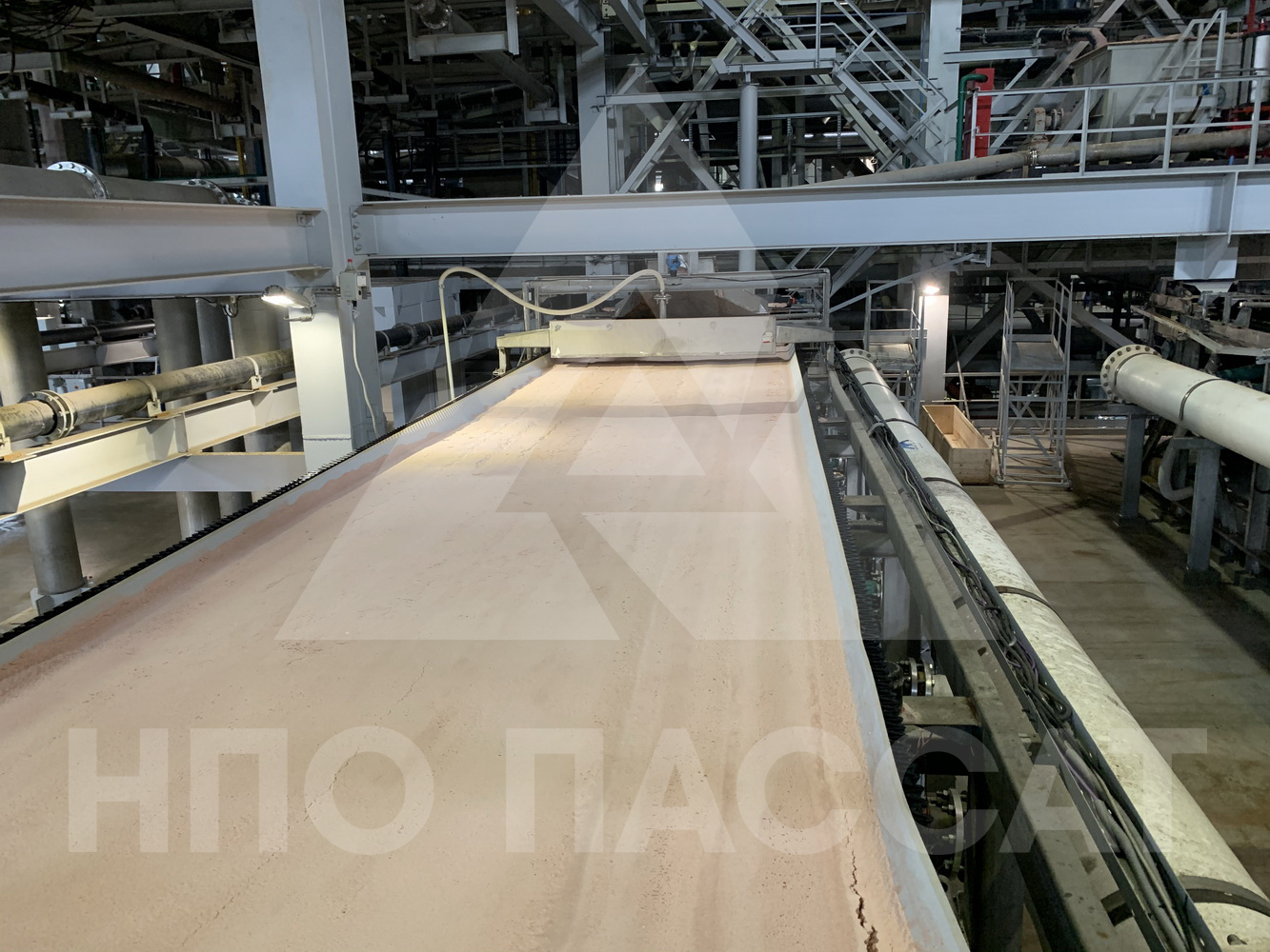 Для обезвоживания флотоконцентрата хлорида калия в отделение фильтрации Петриковского горно-обогатительного комбината ООО «Научно-производственное объединение «Пассат» поставило пять ленточных вакуум-фильтров для обезвоживания хвостов флотации и пять ленточных вакуум-фильтров для обезвоживания флотоконцентрата хлорида калия.