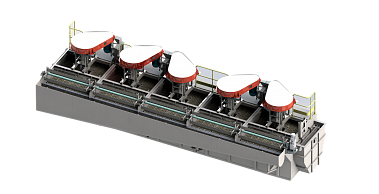 НПО Пассат выпускает камеры механических флотомашин объемом 7,5 и 16 м3. Несколько камер флотомашины располагаются последовательно в ряд, образуя флотомашину с необходимым для процесса количеством камер.